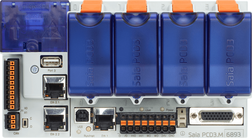 Os controladores Saia PCD utilizam módulos de I/O (Entradas e Saídas) modulares, permitindo adaptar o sistema de automação às necessidades específicas de cada aplicação. Esses módulos possibilitam a conexão direta com sensores, atuadores, sinais digitais e analógicos, além de equipamentos de campo.